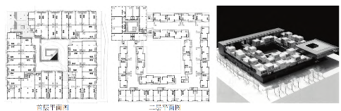 华黎设计的四分院保持了合院的中心与类方形的平面布局,但内部的空间秩序并非根据传统家庭伦理关系来组织,传统家庭式多代同堂的居住模式随着现代社会家庭关系的改变而解体。由“合”到“分”的变化是从原型概念中演绎出来的一种基于现代生活模式的空间组织结构的转译尝试。