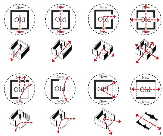 有别于对合院空间秩序的重组,“分形加密”是将合院一个大的整体划分为更小的“空间单元群”,将院落变成互动交流的共享空间,使其通过“宅园合一”的精神性营造与“公共单元”的模式适应当代社会结构。跳出建筑单体的限制,将目光导向规模更为庞大的群体组织,在相似规则的控制下,将空间变化和个性表达集中于围合的内部以及实体空间与虚体空间的搭配组合,例如崔愷的西山艺术工坊。外部具有相似的特征则使得从城市角度理解更为和谐,这种“讷于外而敏于内”的建筑特性与东方含蓄内敛的精神追求形成一种奇妙地呼应。
