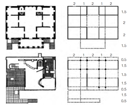 坦因别墅 (上)马孔坦塔别墅 (下) 平面开间比例对比